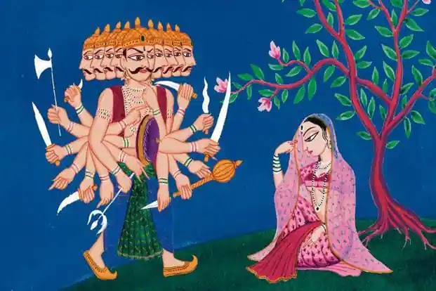 இராவணனின் அஹம்பாவம்,பேராண்மை, தலைக்கணம் நிறைந்த பார்வையும் மனமும் வனத்தில் எளிய வாழ்வு வாழ்ந்த சீதையின் மேல் பட்டு, அவன் அழிவிற்கு விதையிட்டது.